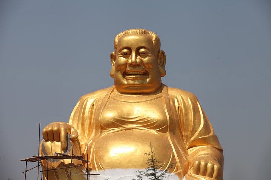 一个大胖子,还拖着布袋子到处要饭,这是什么境界?好吃懒做呗,不是傻子,谁会给他们钱财食物。但是别人骂这大胖子,他也不生气,他依然傻高兴,这就是迷乐,所以弥勒会被很多黑店和奸商供奉为招财佛祖,所谓闷声大发财。