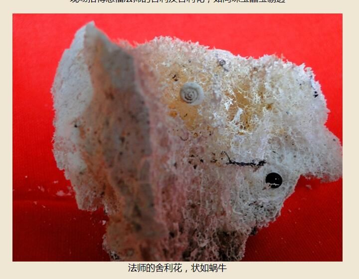 舍利花,就是骨灰的残渣在不同的火化条件下,比如温度湿度不同的时候,无法烧干净的东西。这些骨骼烧过后的残渣并不只是那些高僧大德才能有,一般人也可以,那只是焚烧条件不一样造成的。