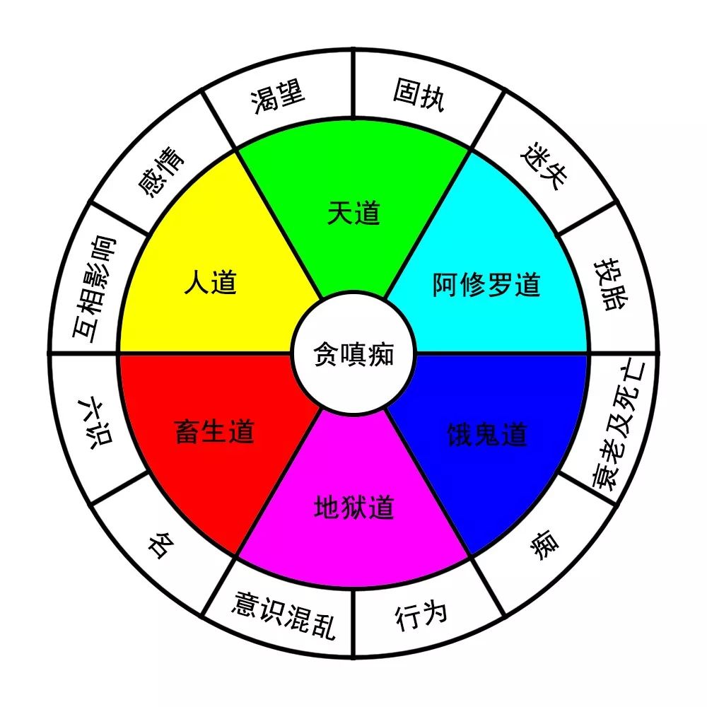 六道中间的“贪嗔痴”都是欲望,是驱使人类行为的核心,这些欲望也驱使着六道轮回那些道的方向。